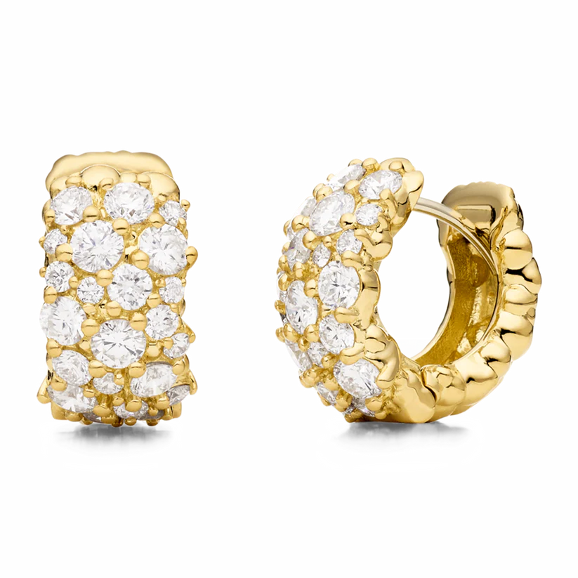 18kt yellow gold and diamond large snap hoop earrings from the 'Confetti' collection.